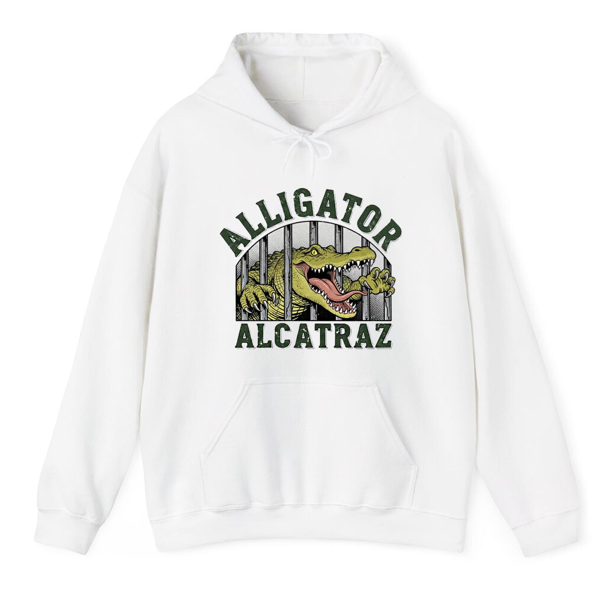 Crafted from high-quality, breathable fabric, the 2025 Angry Alligator Alcatraz Shirt is available in both hoodie and t-shirt styles, offering versatility for every season. The vibrant print uses durable inks to ensure long-lasting color and detail, showcasing the ferocious alligator with its mouth open wide, ready to break free. The combination of deep greens and blacks against a crisp white background enhances visual appeal, making it an eye-catching addition to your everyday outfits.