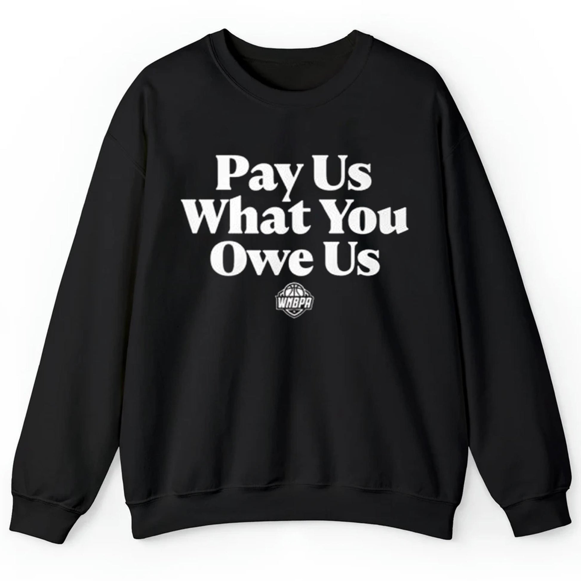 The Caitlin Clark Pay Us What You Owe Us Shirt features a standout design that showcases a powerful message: “Pay Us What You Owe Us” in large, impactful lettering. Positioned at the heart of the shirt, the WNBPA logo symbolizes the fight for equality in women’s sports. Available in various styles such as crewneck, hoodie, and basic tee, this product ensures there's a perfect option for everyone. Whether you wear it to the gym, a game, or a casual outing, this shirt is sure to spark conversation and make an impact.