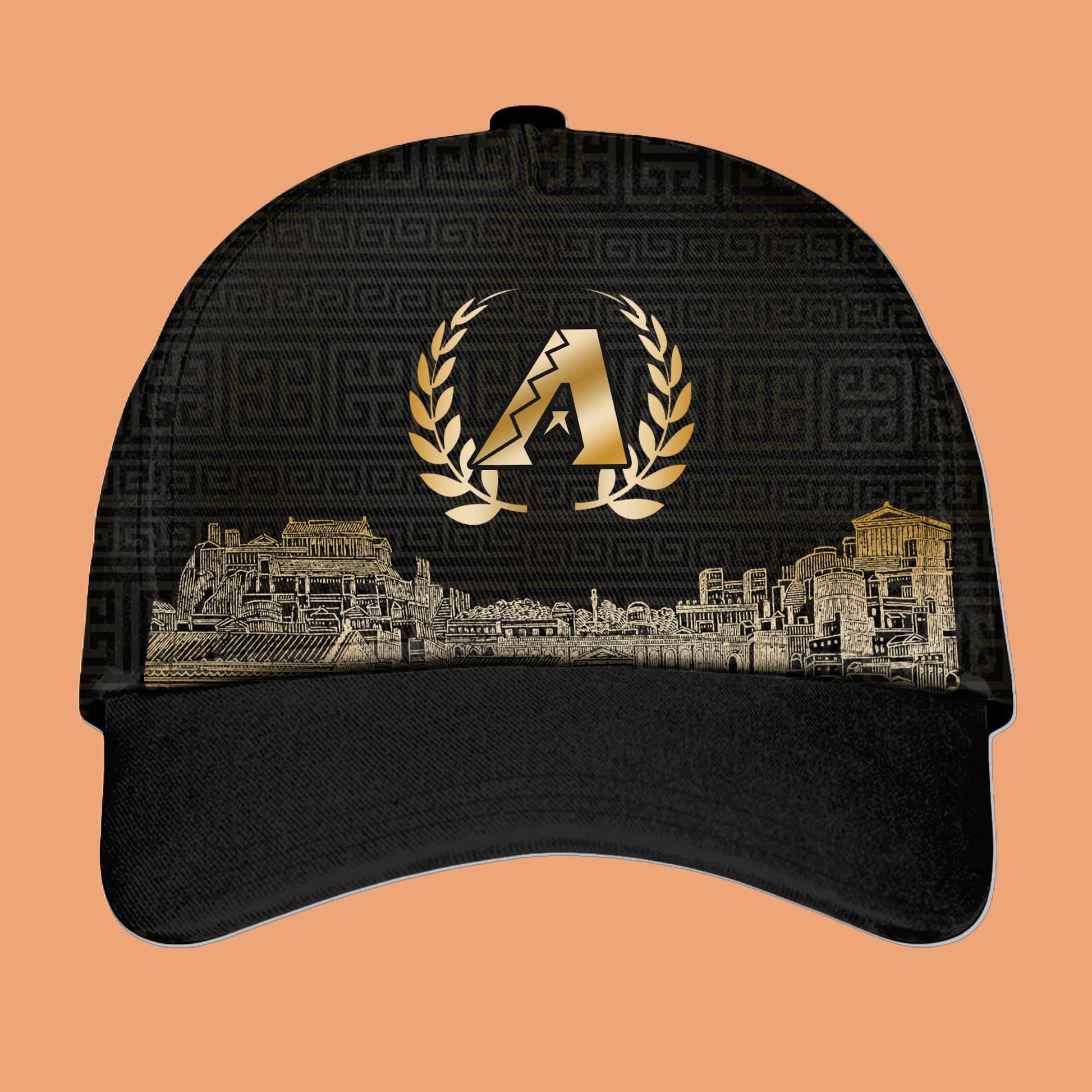 The 2025 Diamondbacks Spartacus Hat is the perfect complement to the jersey. Featuring a detailed graphic of a Roman cityscape on the brim, combined with the iconic "A" logo surrounded by a laurel wreath, this hat brings a piece of history into your daily wardrobe. The gold accents make it a true standout, adding a luxurious touch to your look. Designed for ultimate comfort, the hat is an essential piece for fans who want to add some flair to their game-day attire or casual wear.