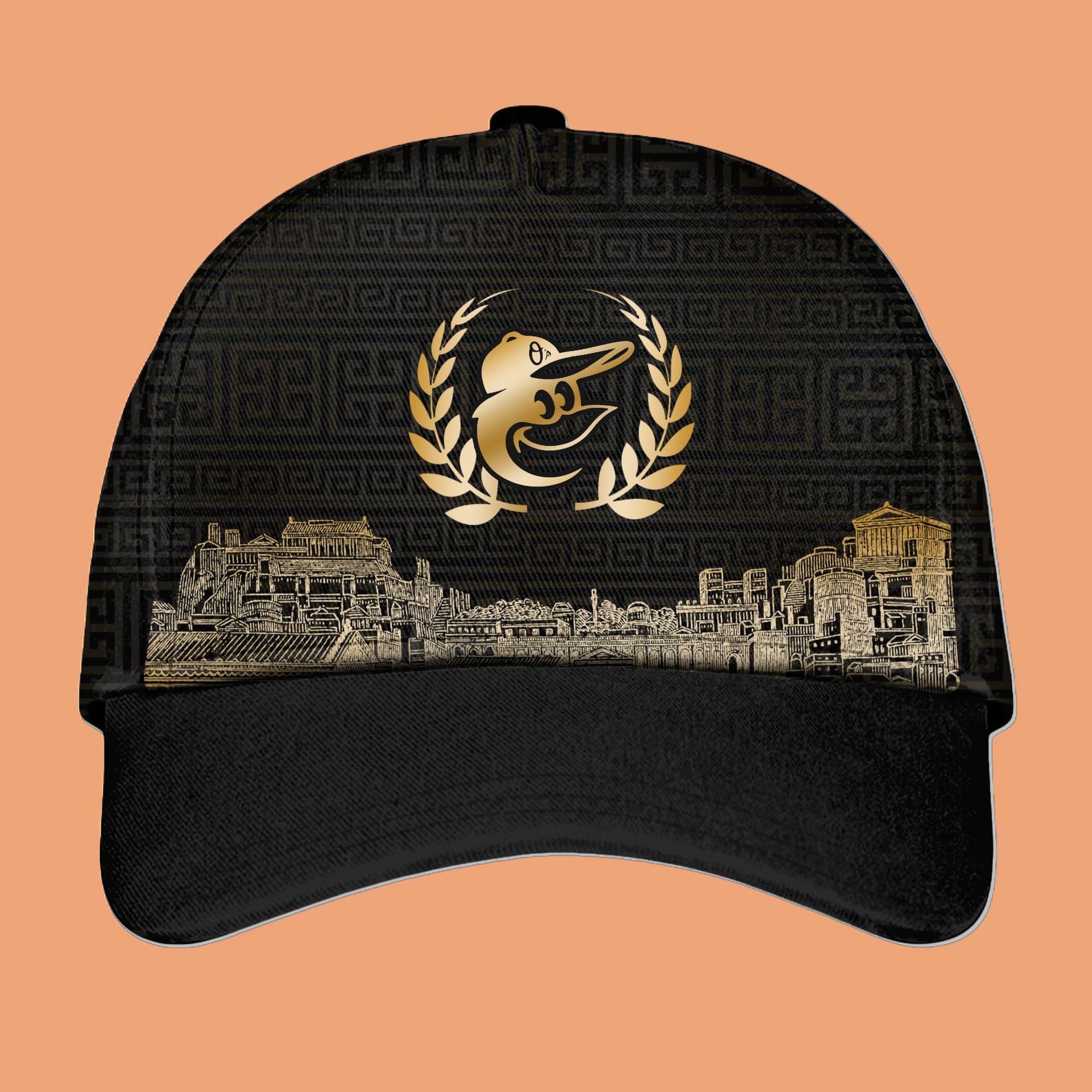 Paired with the jersey, the Orioles Spartacus 2025 Cap is a statement in its own right. The design is sleek and sophisticated, with a gold laurel wreath logo on the front. The iconic bird emblem adds a modern touch, while the intricate Greco-Roman influences on the base seamlessly blend with the jersey, creating a unified look.