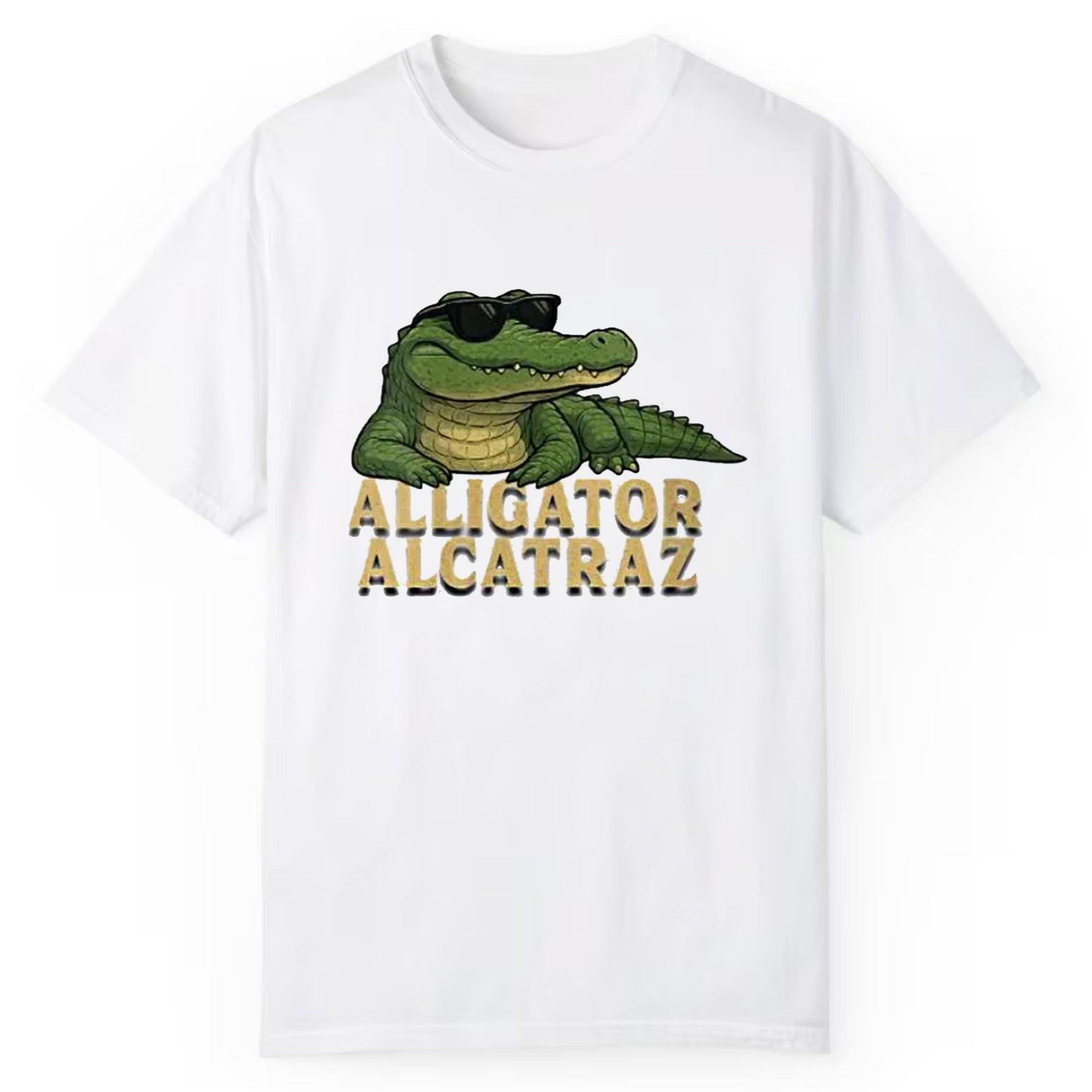 Crafted from soft, premium materials, this shirt ensures maximum comfort whether you're lounging at home, hitting the streets, or catching up with friends. The relaxed fit and breathable fabric make it a versatile staple for all seasons. Its crisp white background highlights the detailed and vibrant alligator artwork with bold, textured lettering that reads “Alligator Alcatraz,” giving it a unique, eye-catching appeal.
