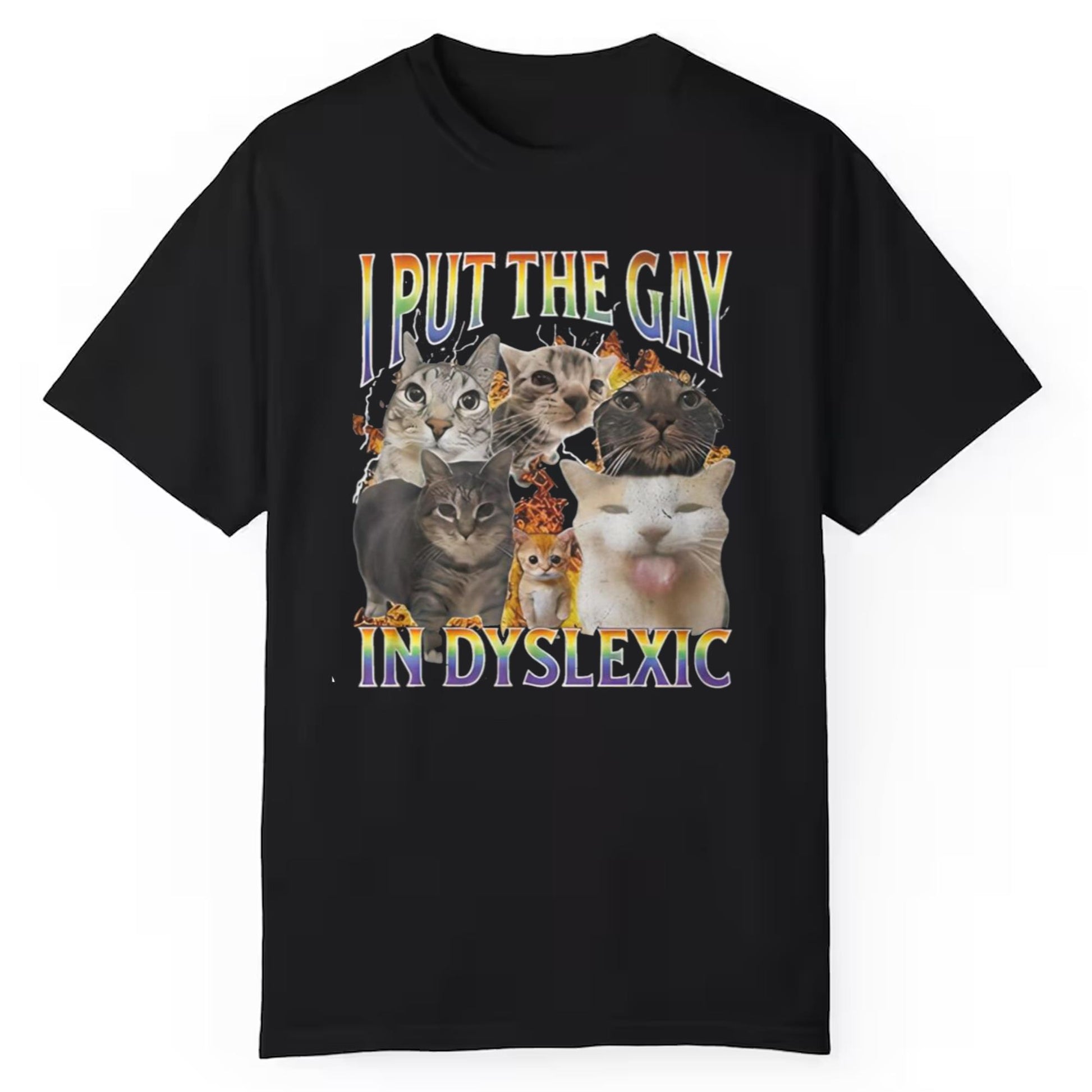 The I Put The Gay In Dyslexic Cat Shirt isn’t just apparel — it’s a declaration of pride, humor, and individuality. Its fun cat graphics and rainbow lettering create an irresistible look that invites smiles and compliments wherever you go. Don't miss out on owning this original, empowering shirt that celebrates you in every stitch. Add it to your wardrobe today and wear your pride boldly!