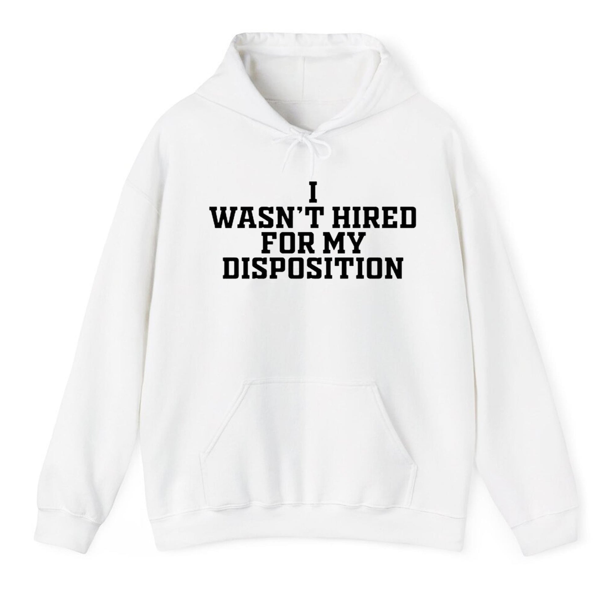 This I Wasn't Hired For My Disposition Shirt is more than just a piece of clothing—it's an attitude. Made from soft, high-quality cotton, it ensures comfort throughout the day. Whether you're relaxing at home, running errands, or meeting friends for coffee, this shirt offers both casual style and a bit of fun. Available in both hoodie, sweatshirt and t-shirt options, it’s versatile enough to be paired with jeans, shorts, or even leggings. The clean, minimalist design features a powerful statement in bold black text that reads, “I WASN’T HIRED FOR MY DISPOSITION.” This shirt tells the world you're more than your attitude—you're here to get things done.