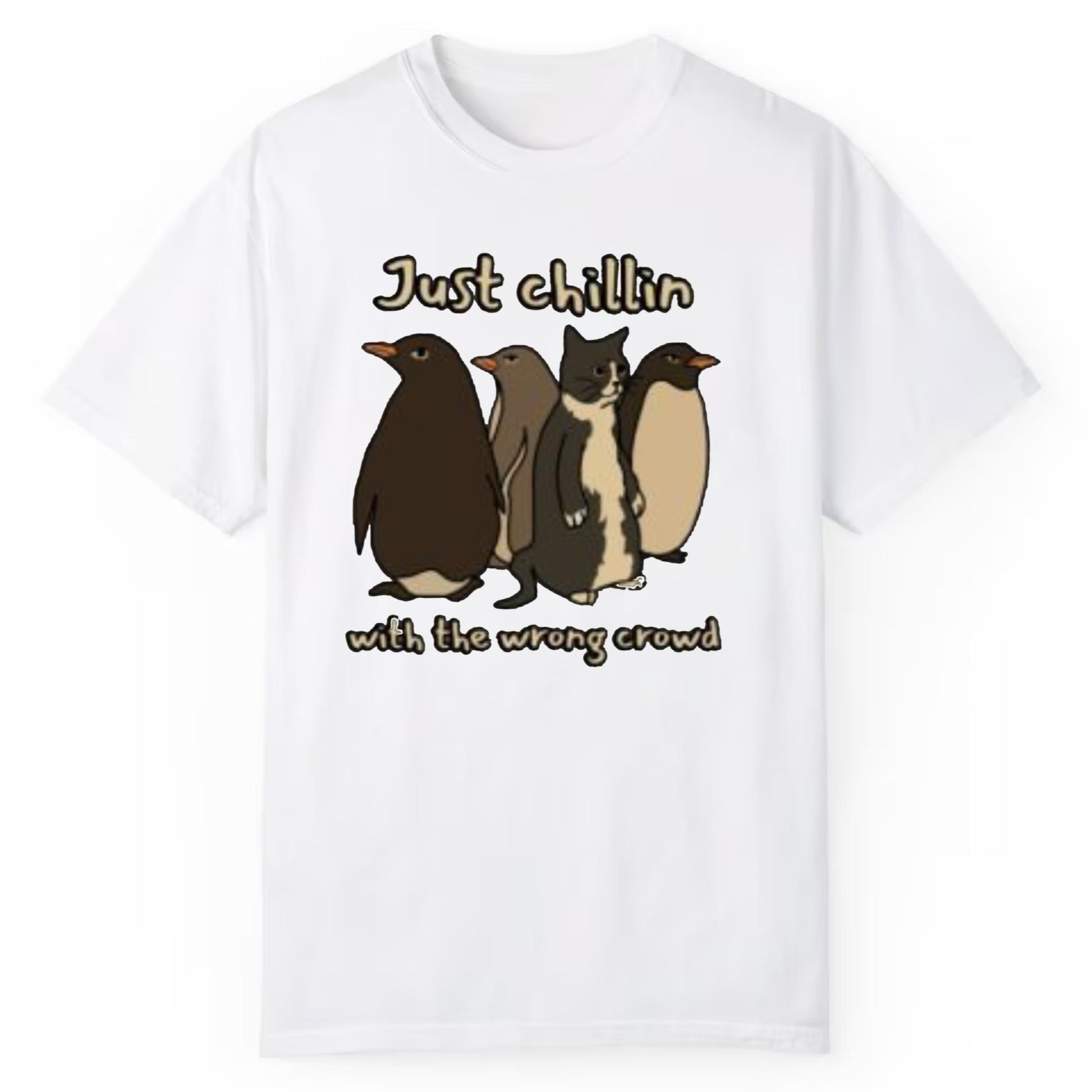 Looking for a shirt that says you don’t quite blend in—and that’s exactly how you like it? The "Just Chillin With The Wrong Crowd Shirt" brings attitude, humor, and personality together in one unforgettable design. Featuring an adorably awkward cat surrounded by a squad of confident penguins, this shirt captures that “odd one out” charm we all secretly love. Whether you're the introvert among extroverts, the rebel in the group, or just someone with a wicked sense of humor, this shirt says it all—loud and proud.