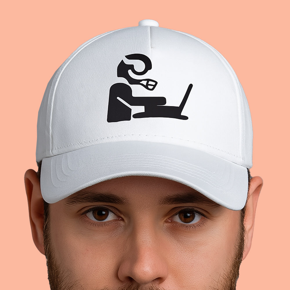 Crafted from premium cotton twill in a clean, classic white, the Kwesi Adofo-Mensah Laptop User features a bold black graphic of a focused laptop user—symbolizing modern leadership, data-driven decisions, and unshakable dedication. The curved brim offers sun protection and a timeless silhouette, while the structured crown ensures a confident fit. The monochrome palette makes this cap effortlessly versatile, pairing with techwear, streetwear, or business casual looks. Its breathable fabric and adjustable strap promise all-day comfort, making it suitable for long work sessions or casual weekend outings. This product is not just fashion—it’s a mindset.