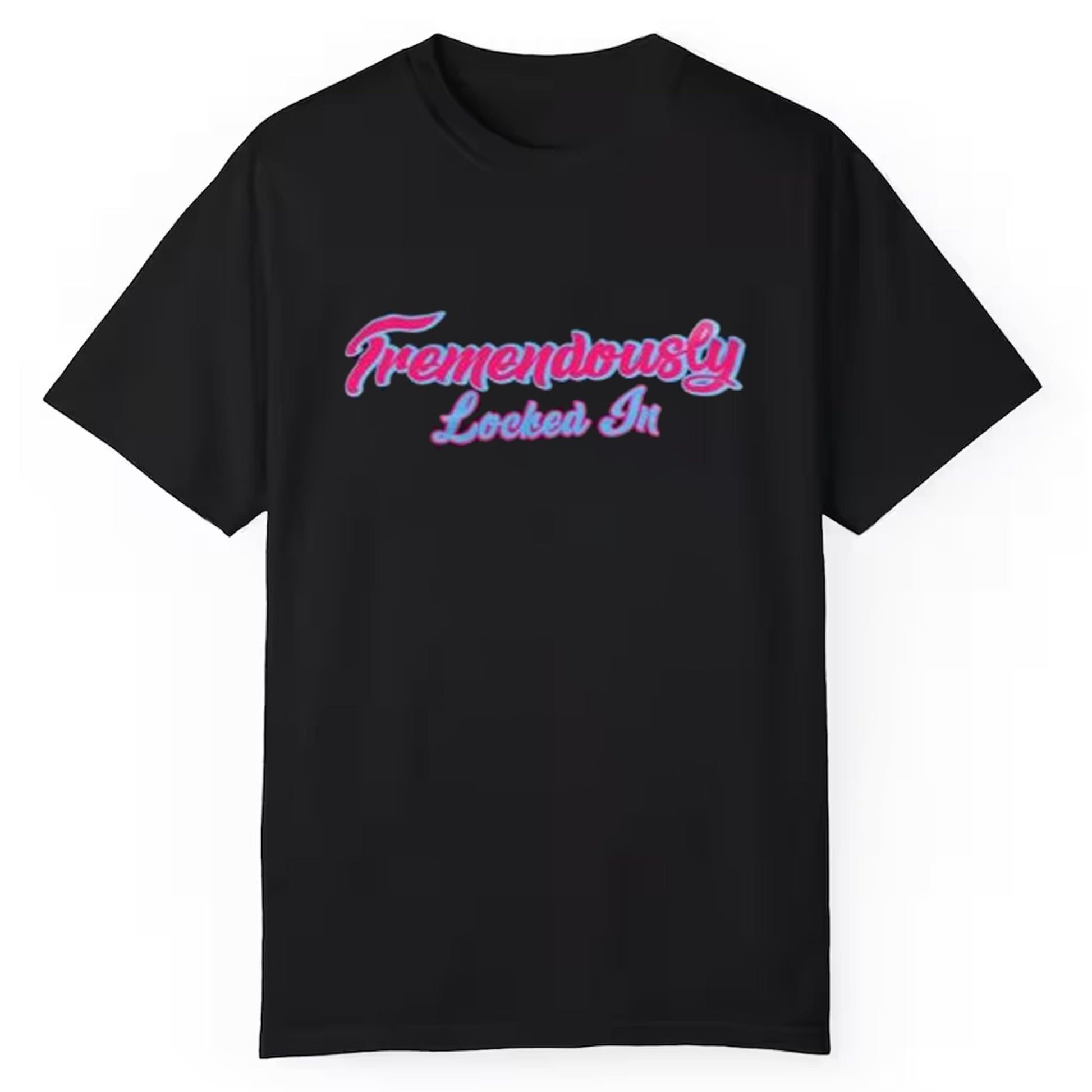 Bold, Eye-Catching Design: Featuring the iconic "Tremendously Locked In" text in vibrant pink and blue hues, this shirt is as energetic and powerful as the person wearing it. The design’s bold look will help you stand out while expressing your commitment to excellence.
